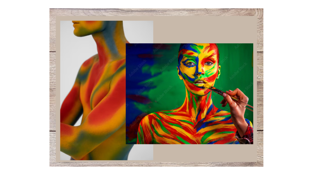 22. Pintura corporal. A arte corporal normalmente usa tintas hipoalergênicas e não tóxicas, como tintas corporais à base de água, hena ou tintas de aerógrafo à base de álcool.