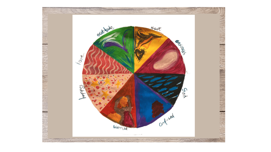 Criar uma roda de cores de emoções pode ser uma forma significativa de representar seus sentimentos de forma criativa. A atividade envolve dividir um círculo em um número predefinido de seções que são então atribuídas a emoções. Você pode então colorir, desenhar, esboçar ou pintar como você gostaria que cada emoção parecesse. Depois de concluído, reflita sobre o motivo de ter escolhido certos temas, cores ou desenhos.